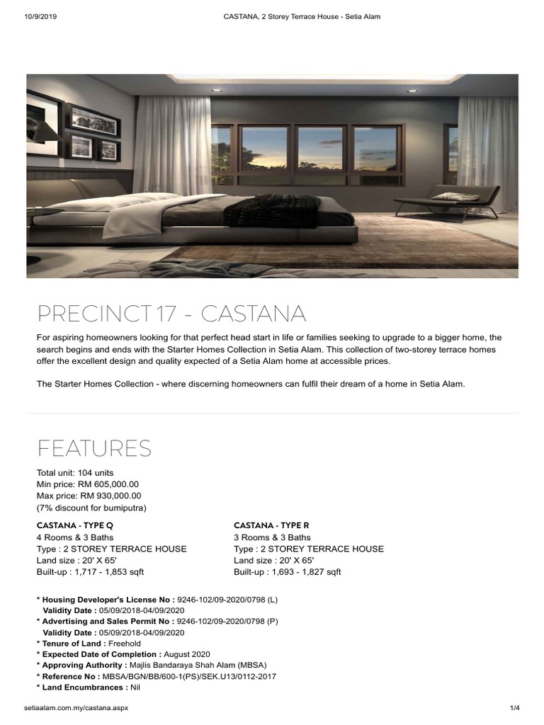 Castana 2 Storey Terrace House Setia Alam Pdf Business